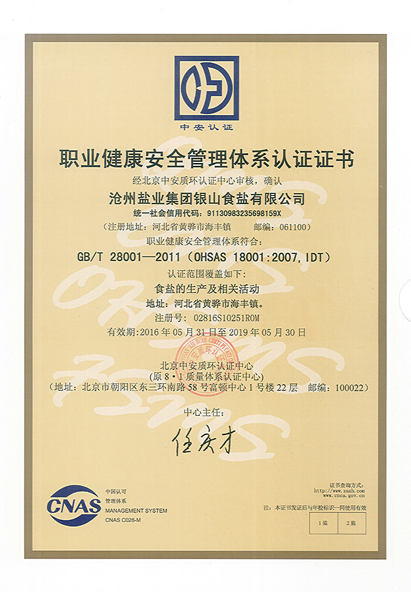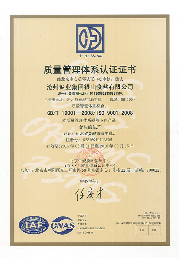 • 銀山食鹽質(zhì)量管理體系認(rèn)證