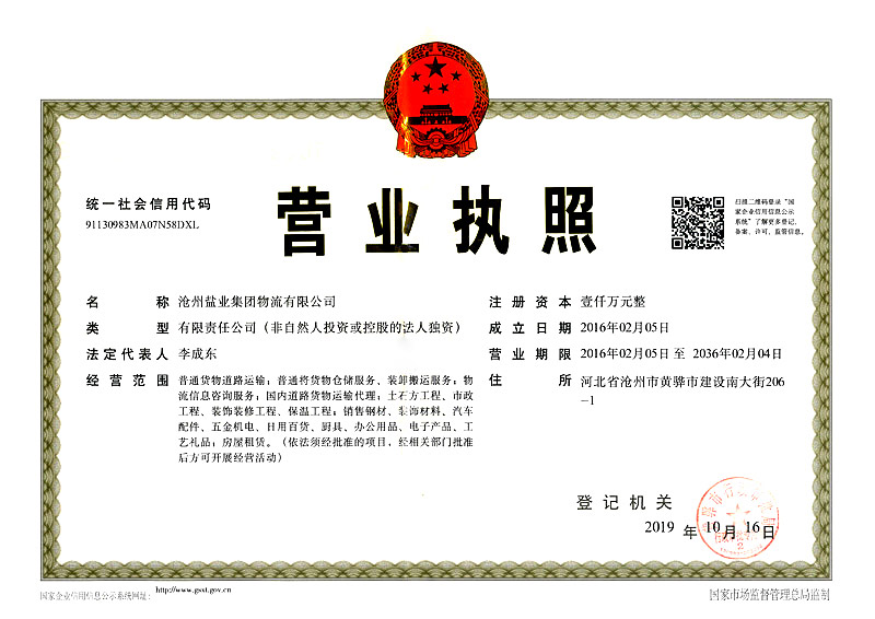 • 物流公司營(yíng)業(yè)執(zhí)照