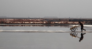 趙連春 風霜雪雨五十年,煮海英雄勇斗天。今朝鹵蕩鹽花放,銀山蜿蜒百里灘。...