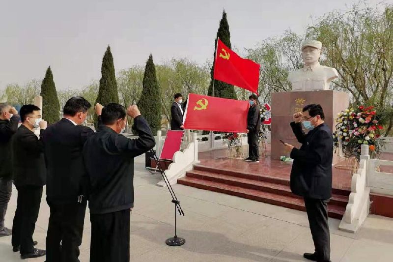 在黃驊烈士塑像前,全體黨員懷著無比崇敬的心情,肅然穆立,深切緬懷革命先烈艱苦卓絕、不怕流血犧牲的愛國情懷和獻身精神。面對鮮紅的黨旗,全體黨員重溫入黨誓詞,以錚錚誓言表達繼承先烈革命遺志的決心。