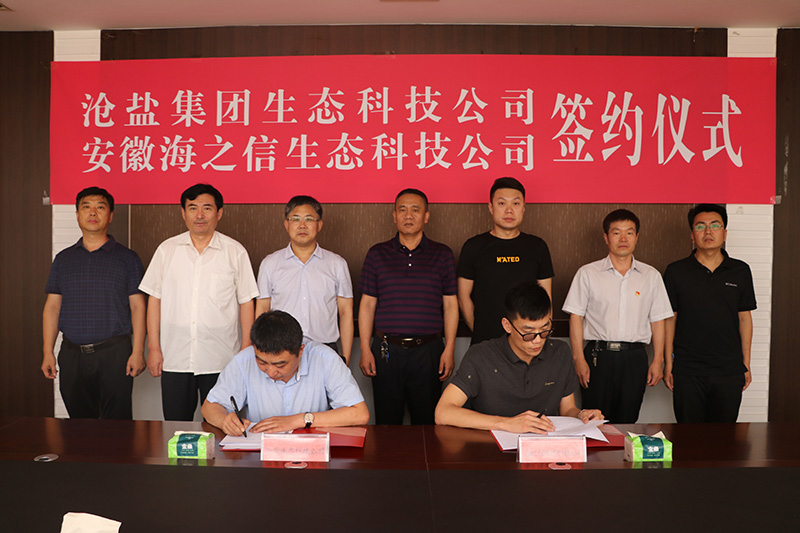 6月19日,滄鹽集團生態(tài)科技公司與安徽海之信生態(tài)科技公司舉行合作簽約儀式,生態(tài)科技公司經(jīng)理劉佳峰與安徽海之信生態(tài)科技有限公司董事長李巖分別代表雙方簽署合作意向書和供銷合同。滄鹽集團領導劉建軍、文興峰、李蜻海及相關部門負責人和合作方代表出席簽約儀式。