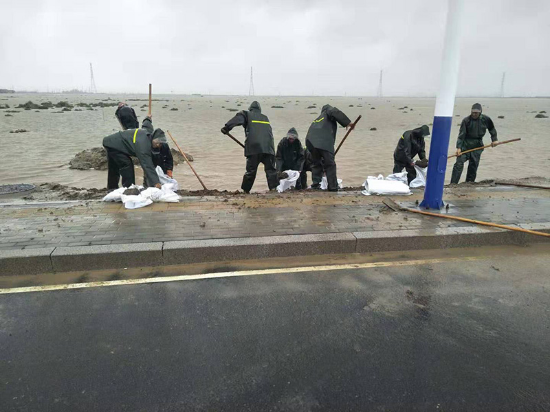 幾個(gè)晝夜中,公司領(lǐng)導(dǎo)班子不間斷巡查汛情危險(xiǎn)地段和各個(gè)排淡下口,查看和掌握水位及流量情況,漲潮時(shí)及時(shí)安排排淡閘關(guān)閉,退潮時(shí)及時(shí)提開(kāi)閘門(mén),確保了潮水不倒灌,淡水及時(shí)排出,并和各相鄰單位溝通協(xié)調(diào),開(kāi)辟新的排淡路線,盡快消除汛情、險(xiǎn)情。8月9日晚到13日,整個(gè)長(zhǎng)蘆鹽業(yè)公司生產(chǎn)區(qū)汛情不斷,防汛突擊隊(duì)和制鹽一線全體職工晝夜巡邏,及時(shí)搶險(xiǎn)。據(jù)統(tǒng)計(jì),本次搶險(xiǎn)救災(zāi)共用編織袋21000余條,鐵絲500余公斤,葦席900余領(lǐng),木樁2000余根,動(dòng)用挖掘機(jī)14臺(tái)、鏟車(chē)7臺(tái),機(jī)械搶險(xiǎn)95小時(shí),投入搶險(xiǎn)人員2700人次,竭盡全力消除淡水壓灘的險(xiǎn)情。重大災(zāi)情面前,長(zhǎng)蘆鹽業(yè)公司顧全大局,為保障渤海新區(qū)港城區(qū)雨水及時(shí)外排,制鹵二工區(qū)階段性封閉了淡水排放口,又及時(shí)在一揚(yáng)揚(yáng)水站為新區(qū)排水提供供電,并且主動(dòng)降低滄海公園水位,保證港城排水設(shè)備正產(chǎn)運(yùn)轉(zhuǎn)、免遭高水位損壞,為港城居民正常生產(chǎn)生活貢獻(xiàn)力量,體現(xiàn)了高度的責(zé)任感和愛(ài)崗奉獻(xiàn)的滄鹽精神。在歷史罕見(jiàn)的超強(qiáng)臺(tái)風(fēng)、特大暴雨面前,長(zhǎng)蘆鹽業(yè)公司全體干部職工無(wú)畏無(wú)懼,搏風(fēng)擊雨,沒(méi)發(fā)生任何外圍淡水壓灘現(xiàn)象,竭盡全力減少鹽斤、塑苫、企業(yè)財(cái)產(chǎn)損失。