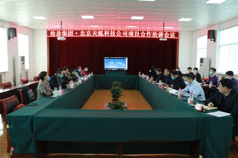 劉建軍對北京天泓科技公司董事長郭新洪一行的到來表示歡迎,并與其就生態(tài)科技園軟水鹽及軟水機項目合作進行了交流洽談。
