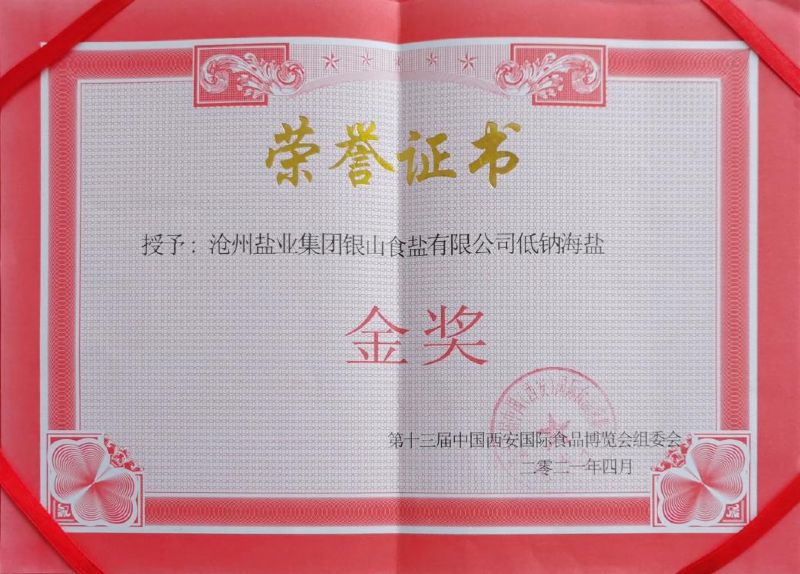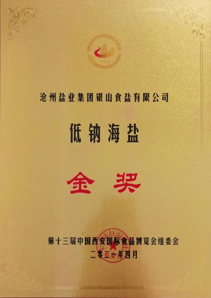 4月16至18日,黨委書記、董事長劉建軍率隊赴陜西西安參加了西安第十三屆國際食品博覽會。"滄鹽"牌低鈉海鹽喜獲本次博覽會金獎。
