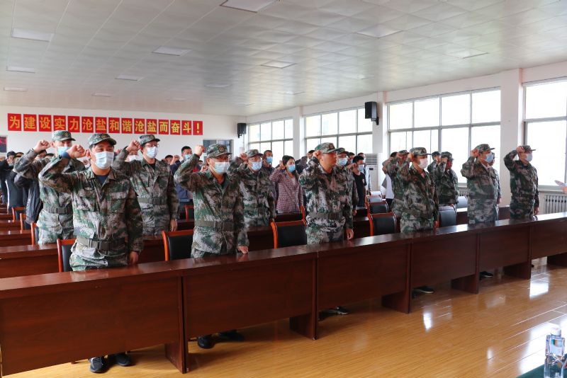 大會(huì)在雄壯的《中國(guó)人民解放軍軍歌》中拉開序幕,曹建功宣讀了民兵干部任命。張富棚對(duì)參加點(diǎn)驗(yàn)的民兵進(jìn)行了身份核查,所有參加點(diǎn)驗(yàn)活動(dòng)的民兵舉手宣誓,展示了滄鹽集團(tuán)民兵隊(duì)伍良好的精神面貌。新入隊(duì)民兵代表進(jìn)行了表態(tài)發(fā)言。