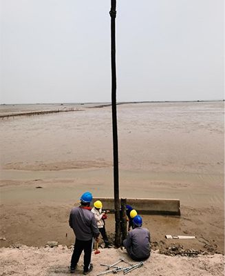電力公司領(lǐng)導(dǎo)班子對恢復(fù)工程高度重視,因原路由被徹底毀壞,常規(guī)線路架設(shè)方式不適用恢復(fù)工程。在多方協(xié)調(diào),確定了線路路由后,經(jīng)過多次現(xiàn)場勘查,集思廣益,反復(fù)研究,最終確定了施工方案,決定創(chuàng)造性地采用地樁連接固定的方式豎立電桿。5月13日,在完成前期測量、定位、材料設(shè)備等準(zhǔn)備工作后,工程正式啟動。電力公司工程部職工按照施工方案,在多機(jī)械的配合下,克服環(huán)境惡劣、線路長等不利因素,于5月20日,完成了電桿豎立工作。