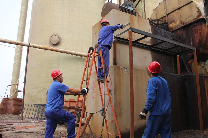 2017年溴素公司成立后,針對(duì)落后的操作工藝和設(shè)備設(shè)施,經(jīng)理李東亮按照集團(tuán)公司產(chǎn)業(yè)升級(jí)的目標(biāo),投入大量資金,帶領(lǐng)干部職工先后對(duì)廠區(qū)及設(shè)備進(jìn)行升級(jí)改造。將溴素二廠水泥吹出塔改造為纏繞式玻璃鋼塔 ,對(duì)危舊房屋進(jìn)行拆除,對(duì)硫磺燃燒車(chē)間、職工餐廳進(jìn)行整體搬遷,供電設(shè)施改造成集成箱式變壓器;將溴素三廠吹出塔內(nèi)主鹵水管道改為外置,更換了鹵泵和吹出塔填料,對(duì)鹵水供鹵管道進(jìn)行整改,廠區(qū)全面硬化,兩個(gè)溴素廠面貌為之一新。