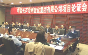 論證會(huì)由中鹽總公司、中鹽制鹽工程技術(shù)研究院、國家海洋局海水淡化與綜合利用研究所、中國石油和化學(xué)工業(yè)規(guī)劃院、天津科技大學(xué)、天津長蘆漢沽鹽場(chǎng)、天津海晶集團(tuán)公司和中鹽紅四方股份有限公司等相關(guān)行業(yè)及企業(yè)的9名專家組成專家組,并推選中鹽制鹽工程技術(shù)研究院院長、教授級(jí)高工李樹生為專家組組長;同時(shí)邀請(qǐng)了河北省發(fā)改委、滄州市發(fā)改委、滄州渤海新區(qū)管委會(huì)、滄州渤海新區(qū)化工產(chǎn)業(yè)園區(qū)等地方政府領(lǐng)導(dǎo),與發(fā)展規(guī)劃有關(guān)聯(lián)的滄東國華電廠、華潤電廠、滄州水利設(shè)計(jì)院、華北電力設(shè)計(jì)院等單位的領(lǐng)導(dǎo)參加了論證會(huì)。中鹽總公司和我公司相關(guān)領(lǐng)導(dǎo)出席了會(huì)議。
