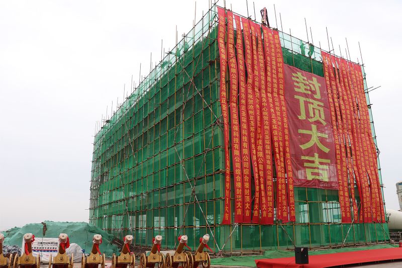 8月18日,滄州正圣環(huán)保公司項(xiàng)目施工現(xiàn)場(chǎng)人頭攢動(dòng),辦公大樓被一條條紅色標(biāo)語(yǔ)裝點(diǎn)得格外喜慶。由建筑工程公司承建的正圣公司綜合辦公樓主體框架工程順利完成并舉行了封頂儀式。儀式由正圣環(huán)保公司董事長(zhǎng)閆宗金主持。