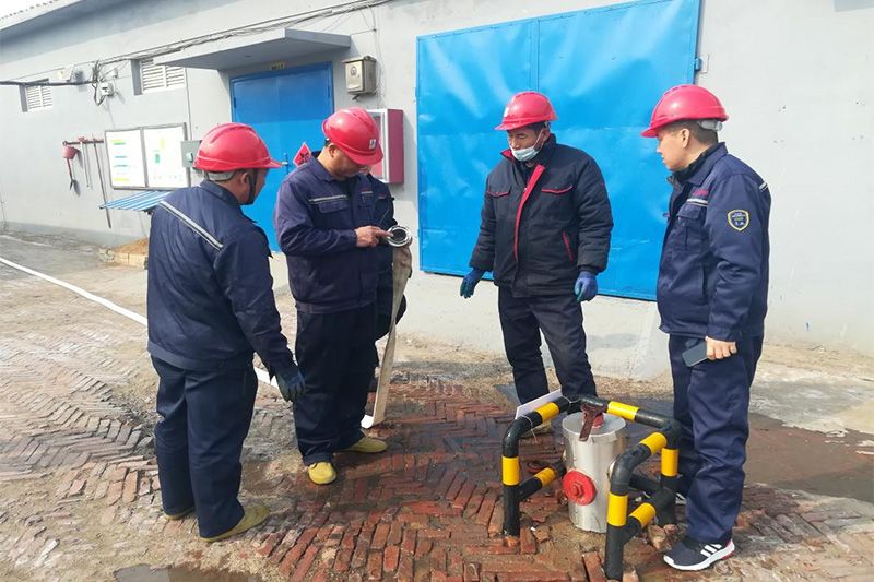 演練開始前,首先對職工進行了安全理論培訓。培訓結束后,參演隊員在廠區(qū)分別舉行了消防栓使用和氯氣泄漏回收裝置使用操作演練,并對設備運行進行了隱患排查,對查出的消防水帶連接口密封不嚴漏水泄壓和氯氣回收裝置堿液輸送管管箍處出現(xiàn)滴漏現(xiàn)象的兩處隱患,由維保人員現(xiàn)場予以維修,排險了隱患。