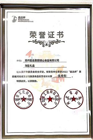 本次大賽由河北省文化和旅游廳、河北省工業(yè)和信息化廳、河北省商務(wù)廳聯(lián)合舉辦,自2022年4月開(kāi)始啟動(dòng)。為了提升公司產(chǎn)品影響力,提升品牌形象,銀山食鹽有限公司積極準(zhǔn)備,確定以滄鹽牌“海鹽禮盒”為參賽作品。宣傳部配合銀山公司精心準(zhǔn)備,專(zhuān)門(mén)派出姬曉曼全程參與設(shè)計(jì)和路演。初賽采取網(wǎng)絡(luò)投票、視頻介紹的方式進(jìn)行。滄鹽牌“海鹽禮盒”經(jīng)過(guò)層層選拔篩選,與其他7件作品從全市眾多參賽作品中脫穎而出,代表滄州市入圍河北省文創(chuàng)和旅游商品創(chuàng)意設(shè)計(jì)大賽決賽。2022年12月14日,第四屆河北省文創(chuàng)和旅游商品創(chuàng)意設(shè)計(jì)大賽決賽在石家莊以視頻會(huì)議加網(wǎng)絡(luò)直播的形式舉行,選手通過(guò)網(wǎng)絡(luò)進(jìn)行路演,評(píng)審線(xiàn)上進(jìn)行打分。最終,滄鹽牌“海鹽禮盒”榮獲河北省文創(chuàng)和旅游商品創(chuàng)意設(shè)計(jì)大賽優(yōu)秀獎(jiǎng)、滄州市文創(chuàng)和旅游商品設(shè)計(jì)大賽創(chuàng)新創(chuàng)意獎(jiǎng)。