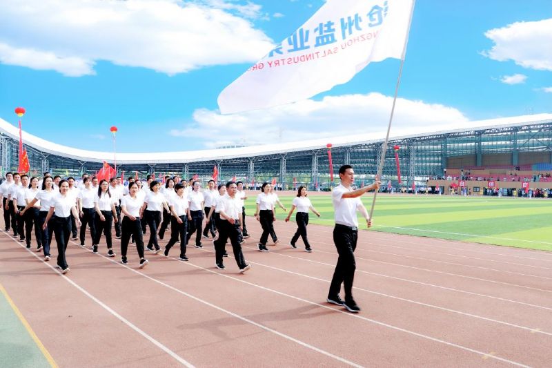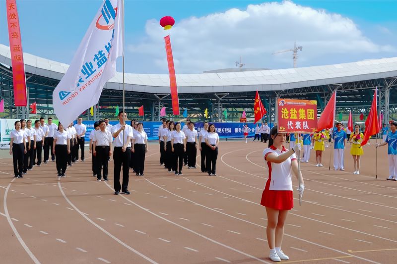 入場式中,我公司代表方陣高舉滄鹽集團旗幟,踏著激昂的運動員進行曲,高喊“滄鹽滄鹽勇往直前”,邁著整齊而有力的步伐走過主席臺,充分展現(xiàn)了滄鹽集團干部職工良好的精神風貌。