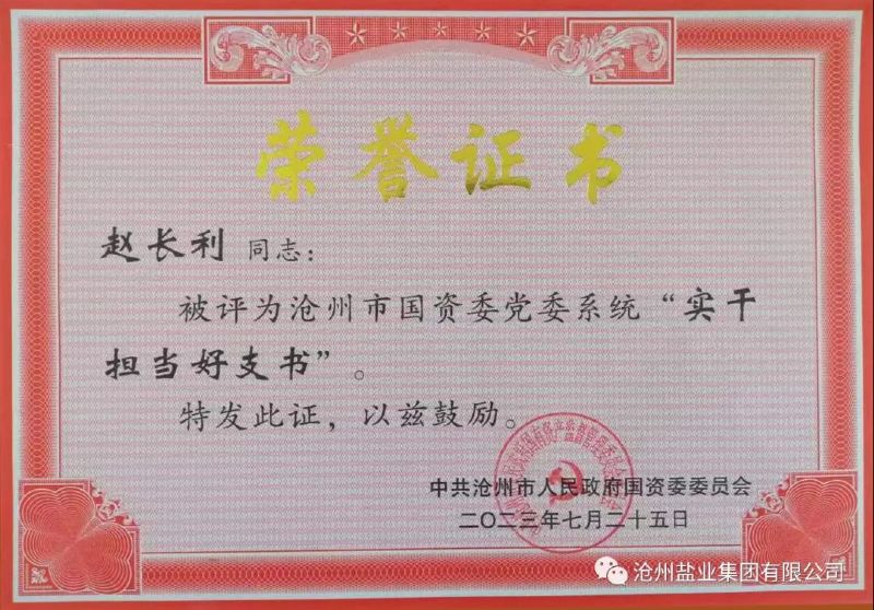趙長(zhǎng)利現(xiàn)任滄州鹽業(yè)集團(tuán)長(zhǎng)蘆黃驊鹽業(yè)集團(tuán)有限公司黨總支書記,他以求真務(wù)實(shí)的態(tài)度,清正廉明的作風(fēng),為民服務(wù)的熱情,認(rèn)真履行職責(zé),圓滿完成公司黨委及上級(jí)部門交給的各項(xiàng)任務(wù)。自2019年至今,長(zhǎng)蘆公司黨總支先后4次被集團(tuán)公司黨委授予“先進(jìn)黨總支”“黨建引領(lǐng)先進(jìn)黨總支”榮譽(yù)稱號(hào),趙長(zhǎng)利本人還多次被授予“優(yōu)秀共產(chǎn)黨員”“特殊貢獻(xiàn)先進(jìn)個(gè)人”“產(chǎn)業(yè)升級(jí)標(biāo)兵”等榮譽(yù)稱號(hào)。