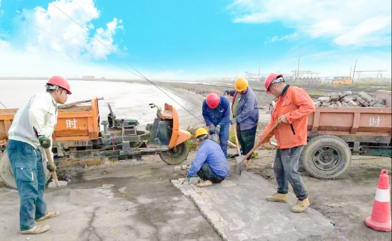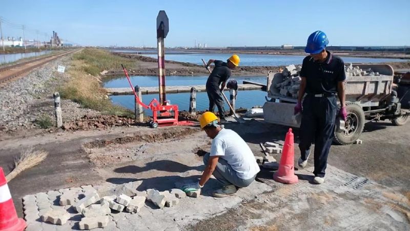 9月29日,建筑工程公司施工科職工早早來到施工現(xiàn)場,提前準(zhǔn)備好發(fā)電機、水泥、連鎖塊、沙子、石子等工具材料,通過對現(xiàn)場勘查,制定出修補辦法。按照修補方案,職工們開始了道路修補工程。修補施工現(xiàn)場,一派忙碌的景象,職工們有砌磚的、有拌灰的、有灌縫的,電鎬的沖擊聲、發(fā)電機的轟鳴聲與職工忙碌的身影交匯在一起,成為一道亮麗的風(fēng)景線。