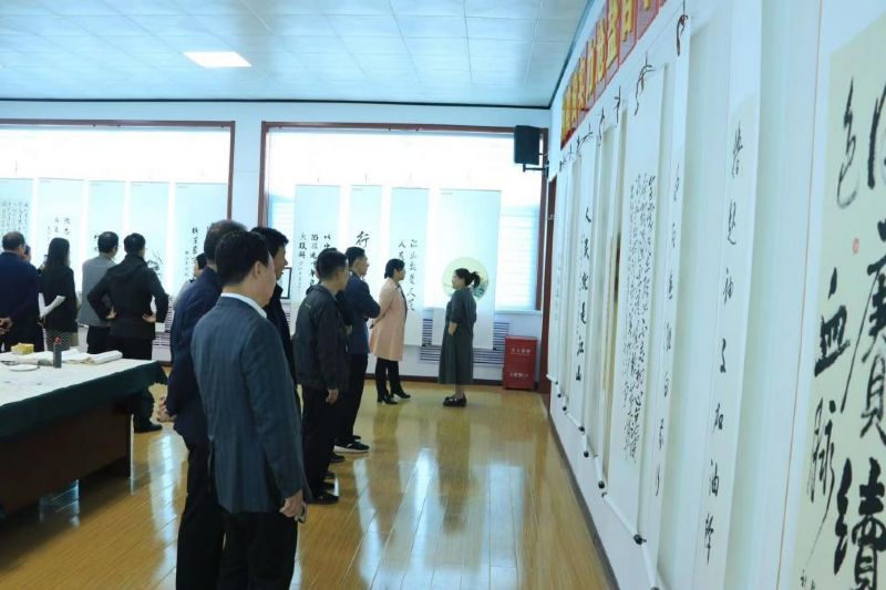 此次書畫展以習近平總書記的金句語錄和黨的二十大報告中的重要論述為主要內容,以傳承和弘揚中國傳統書畫藝術為手段,以筆抒懷,用筆抒情,共計收到在職干部職工、退休干部職工作品40余幅,經過嚴格篩選,共有28幅作品參加展覽。開展當日,吸引了100多名干部職工參觀學習,部分書畫愛好者還現場揮毫潑墨,與干部職工共同交流創(chuàng)作心得。
