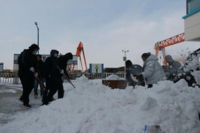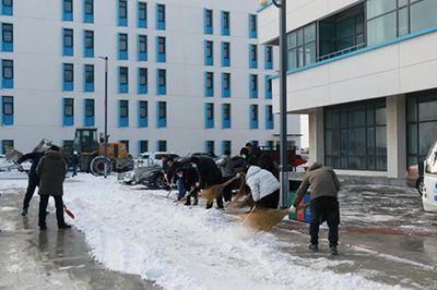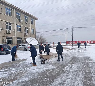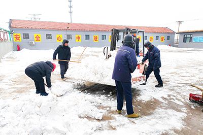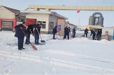 12月13日至15日的降雪天氣過程,場區(qū)降水量達到10.3毫米,各生產廠區(qū)積雪厚度超過10厘米,給職工出行和正常生產帶來較大影響。15日清晨,各單位積極行動,組織在崗黨員干部職工,全力清除積雪。
