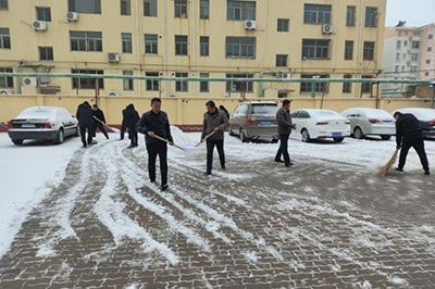 機關黨總支黨員領導干部率先垂范,黨員突擊隊成員、入黨積極分子沖鋒在前,全身心的投入到除雪工作中,經過浴“雪”奮戰(zhàn),院內外積雪得到了及時清理。