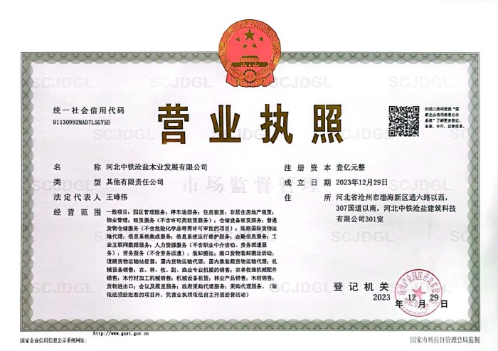 2023年12月29日,河北中鐵滄鹽木業(yè)發(fā)展有限公司注冊成立,標志著滄鹽集團引入央企三級子公司正式落地,華北進口木材產(chǎn)業(yè)園建設正式拉開序幕。