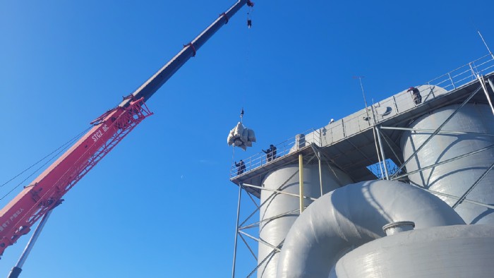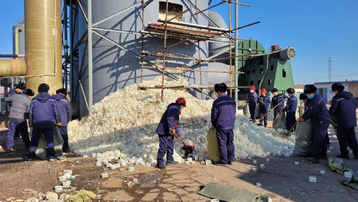 溴素二廠廠區(qū)南“吹出塔”始建于2017年,經(jīng)過(guò)多年高強(qiáng)度運(yùn)行,內(nèi)部填充物“階梯環(huán)”腐蝕氧化嚴(yán)重,致使溴素生產(chǎn)過(guò)程中吸收效果大大降低。為進(jìn)一步提高溴素吸收率,增強(qiáng)塔內(nèi)綜合反應(yīng)效果,保障溴素生產(chǎn)質(zhì)量,溴素二廠全體干部職工于1月4日開(kāi)始,啟動(dòng)“吹出塔”填充物更換工作。在更換過(guò)程中,職工們協(xié)同作戰(zhàn),分工合作,僅用三天時(shí)間便完成了更換工作,比原計(jì)劃提前了兩天,為2024年溴素穩(wěn)產(chǎn)高產(chǎn)打下堅(jiān)實(shí)基礎(chǔ)。