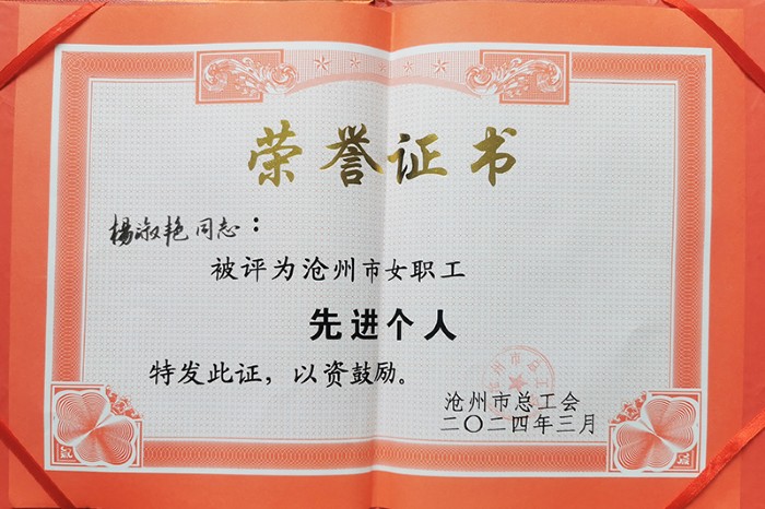 獲獎(jiǎng)職工分別接受了滄州市總工會(huì)和黃驊市婦聯(lián)的表彰。