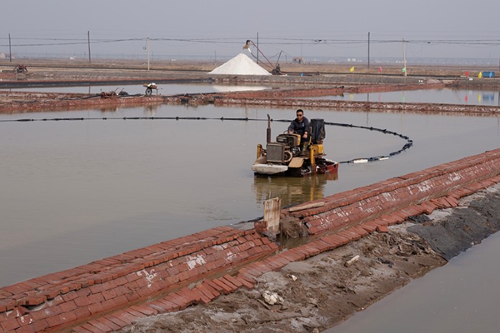鹽田中,鹵水潺潺泛著浪花,鹽粒滾滾聚攏成山,鹽晶剔透閃光芒,機(jī)器轟鳴奮力前行,鹽工扶舵細(xì)操作,勾畫(huà)出一幅豐收繁忙的景象。