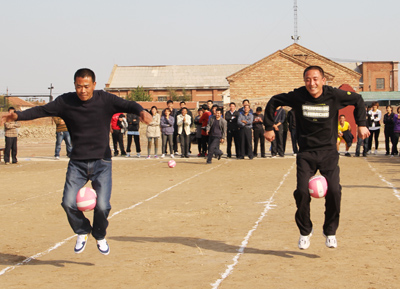 本屆運(yùn)動(dòng)會(huì)與往屆相比,突出了趣味性和團(tuán)體比賽項(xiàng)目,在保留籃球、拔河、乒乓球、羽毛球、象棋、跳棋等競(jìng)技項(xiàng)目的基礎(chǔ)上,增設(shè)了袋鼠夾球、背夾籃球、“三人四足”、跳長(zhǎng)繩等集體參與的趣味性比賽,突出了團(tuán)隊(duì)合作精神。比賽中,笑聲不斷,趣味橫生,參賽運(yùn)動(dòng)員相互鼓勵(lì),相互配合,奮勇爭(zhēng)先;拉拉隊(duì)員高聲吶喊助威,整個(gè)比賽場(chǎng)面精彩不斷,高潮迭起。
