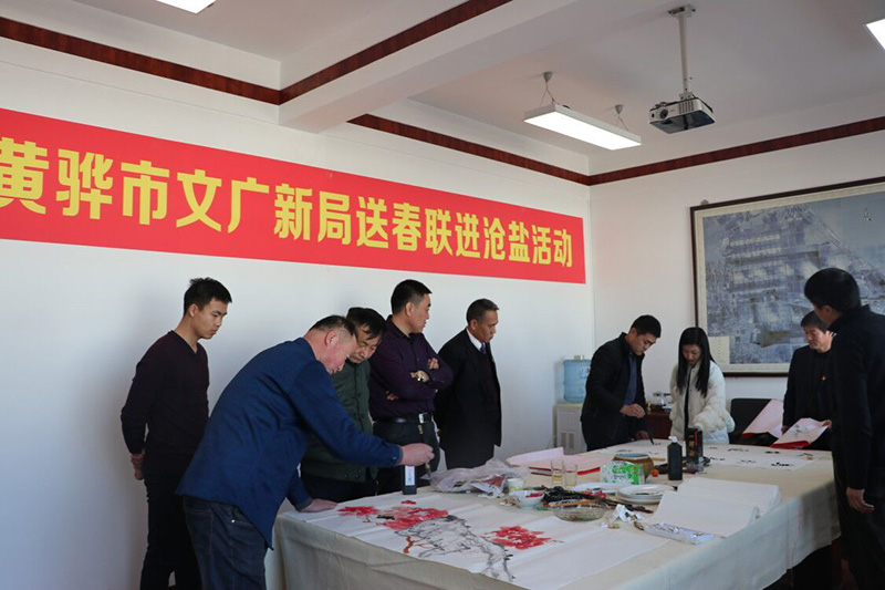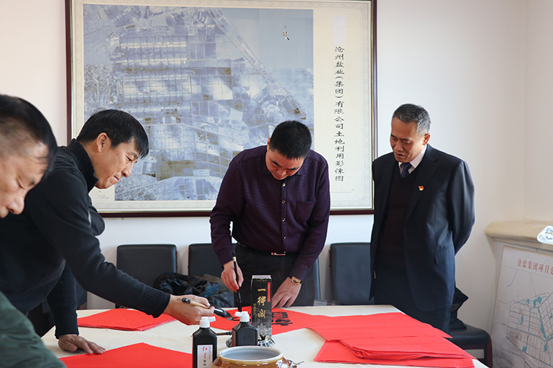 2月2日,黃驊市文廣新局組織本市6位知名書(shū)畫(huà)家到公司開(kāi)展“送春聯(lián)·進(jìn)滄鹽”活動(dòng)。在活動(dòng)現(xiàn)場(chǎng),書(shū)畫(huà)家們潑墨揮毫、妙筆生花,不僅書(shū)寫(xiě)了100余幅象征幸福團(tuán)圓的福字和春聯(lián),而且深情地描畫(huà)出象征富貴吉祥的“牡丹圖”等繪畫(huà)作品,營(yíng)造出喜慶祥和的節(jié)日氛圍。