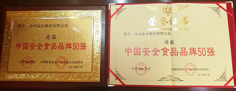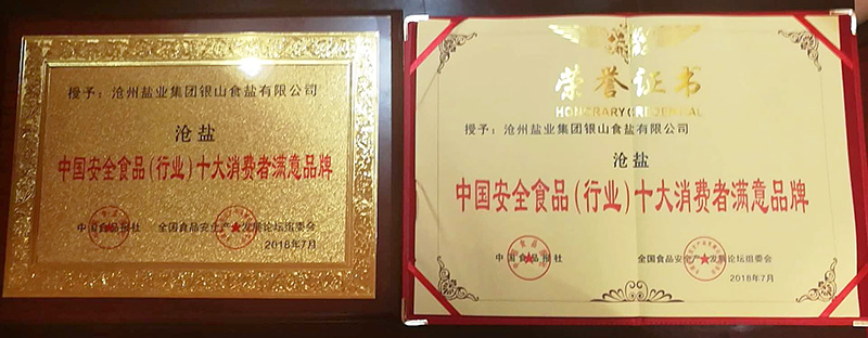 7月28日,在《中國食品報》和中國食品安全產品產業(yè)發(fā)展論壇組委會共同舉辦的“2018中國食品安全產業(yè)發(fā)展論壇暨放心食品品牌推廣活動”全國評選大會上,滄州鹽業(yè)集團有限公司和滄鹽集團銀山食鹽有限公司生產的“滄鹽”牌食用鹽分別獲得“2018中國安全食品品牌50強”、“2018中國安全食品(行業(yè))十大消費者滿意品牌”殊榮。這是“滄鹽”牌食鹽又一次獲得全國性大獎。