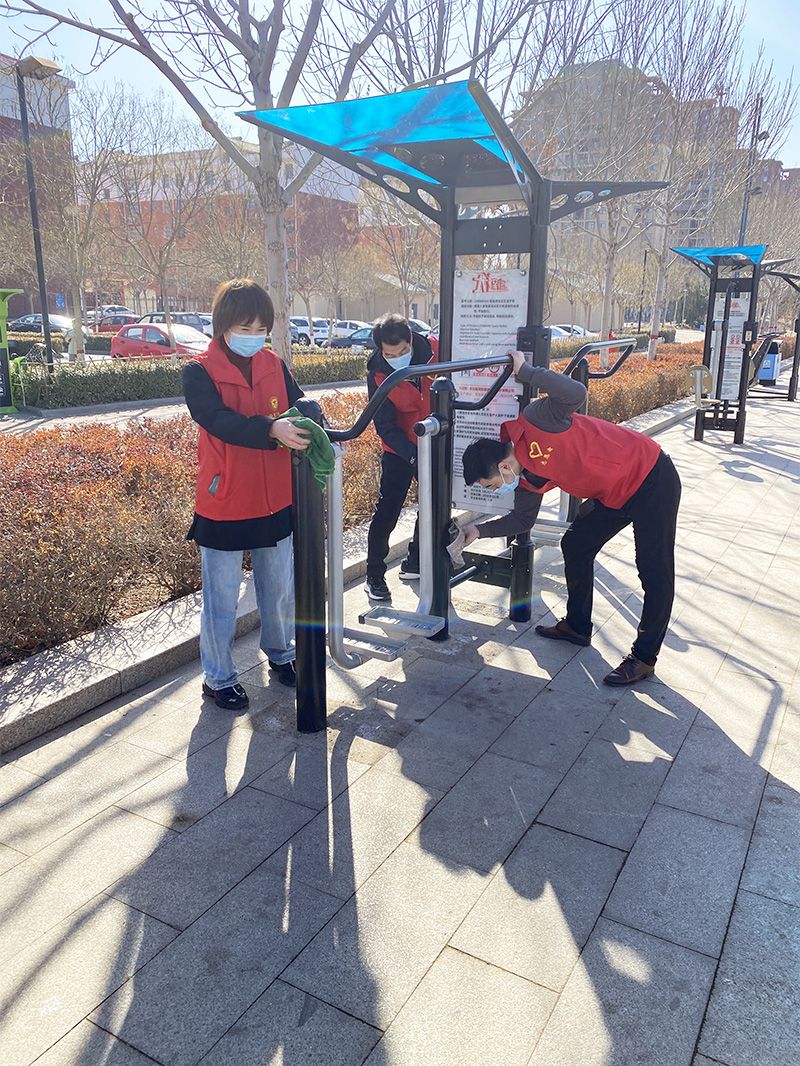 活動(dòng)中,團(tuán)員青年發(fā)揚(yáng)不怕苦、不怕累的光榮傳統(tǒng),對(duì)廣場(chǎng)的健身器械全面擦拭、對(duì)花壇、綠化帶、人行道的垃圾、煙頭全面清理,不放過(guò)一個(gè)死角。